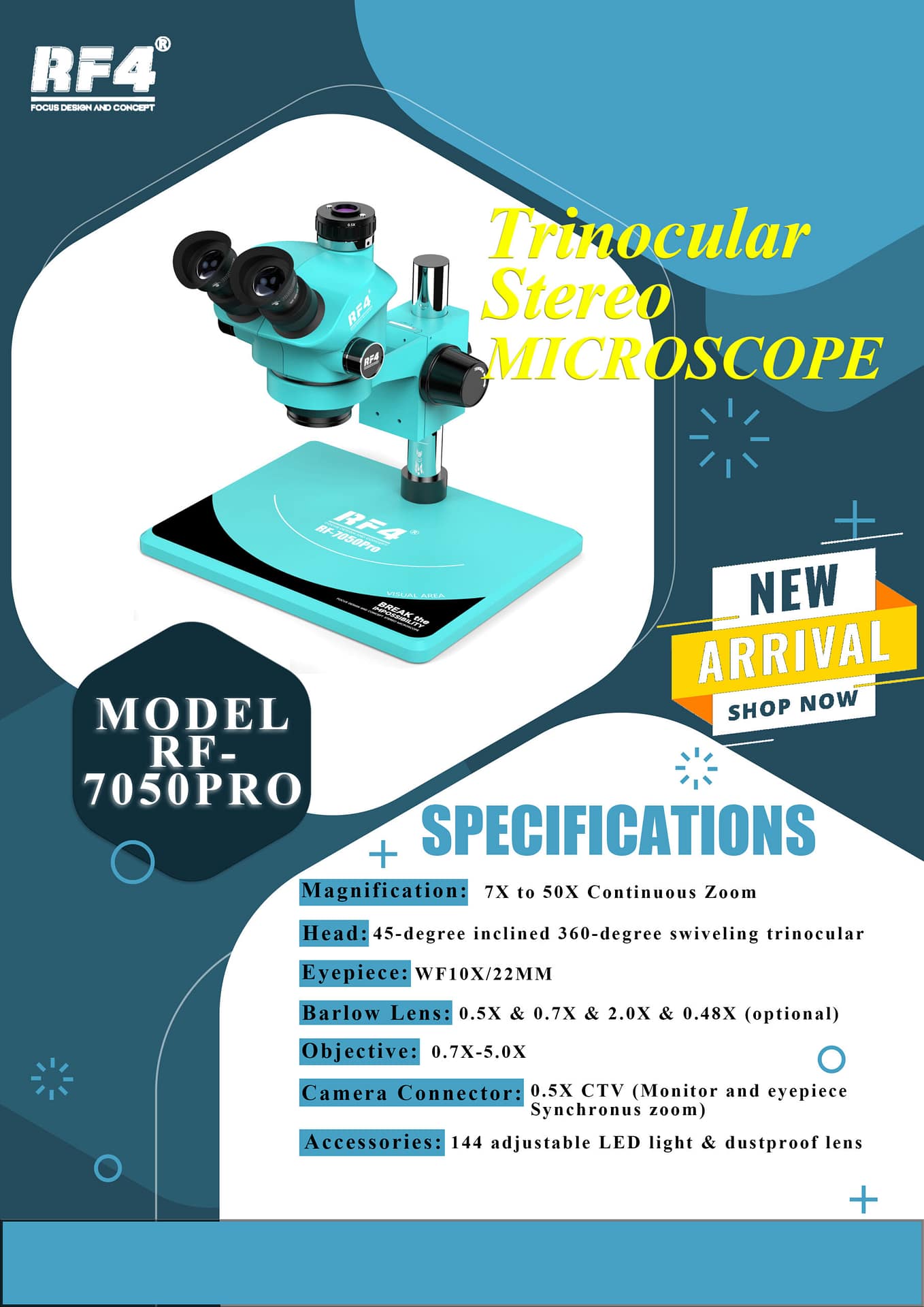 RF4 7050 PRO TRINOCULAR STEREO MICROSCOPE