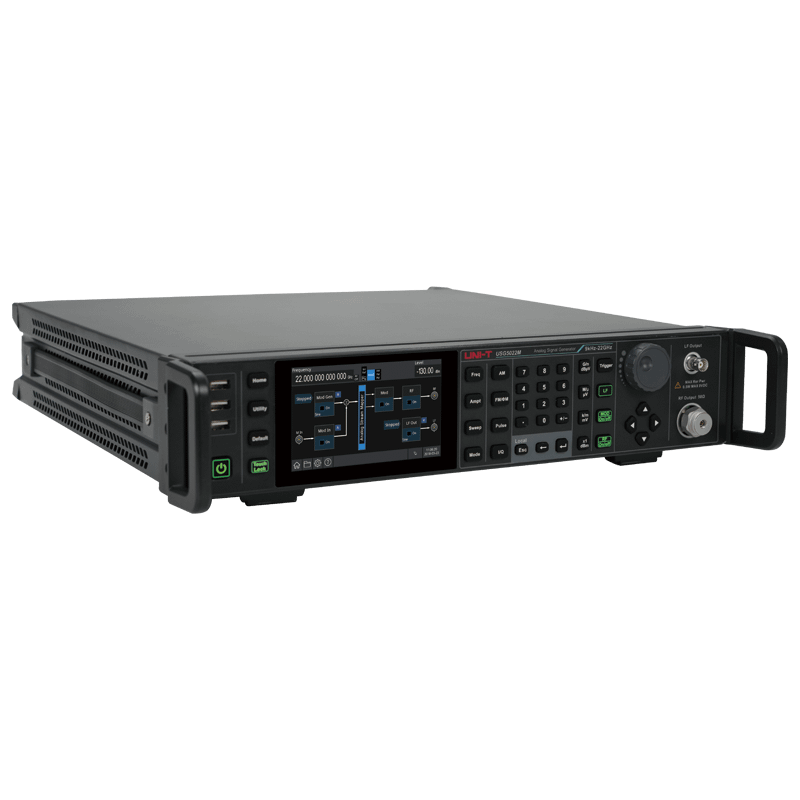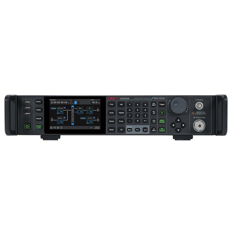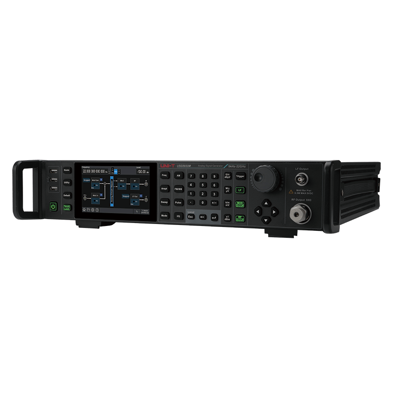 USG5000M Series product features DDS (Direct Digital Synthesis) technology, enabling it to generate high-precision, stable waveform output with a frequency range from 9 kHz to 22 GHz. This product is equipped with analog demodulation capabilities for AM, FM, and ΦM, as well as pulse modulation, impulse train generation, and power meter function. USG5000M series offers convenient operation, superior technical specifications, and an intuitive graphical display, making it a versatile tool for learning, testing, and enhancing work efficiency.