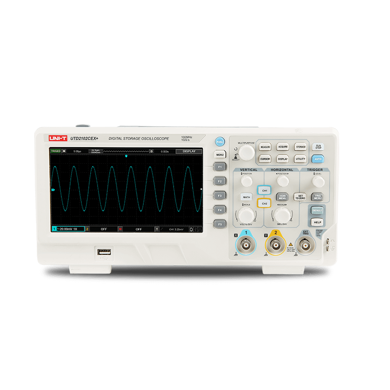| UTD2102CEX+ | 100 MHz | 2 | 1 GSa/s | 64 kpts | 5,000 wfms/s |